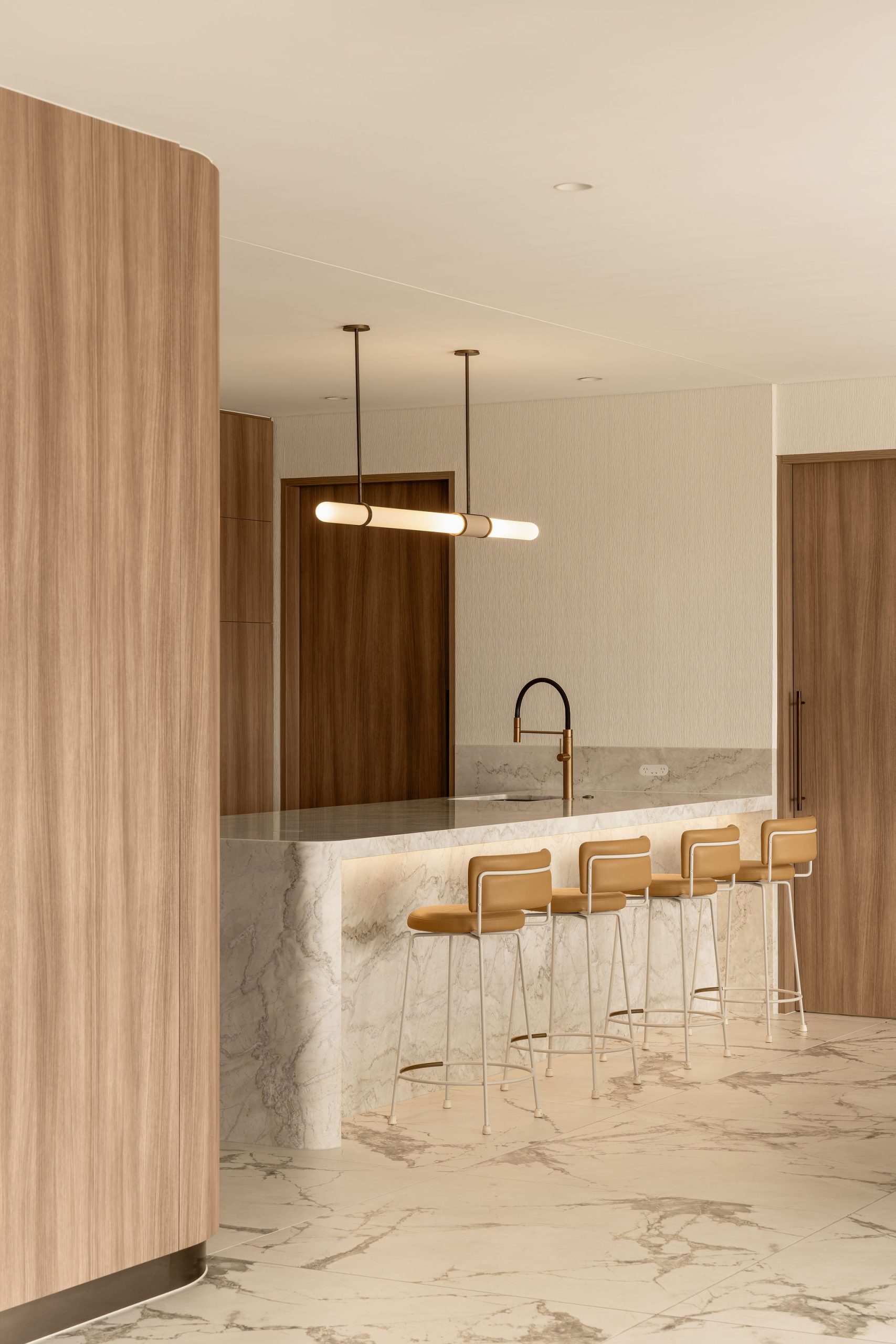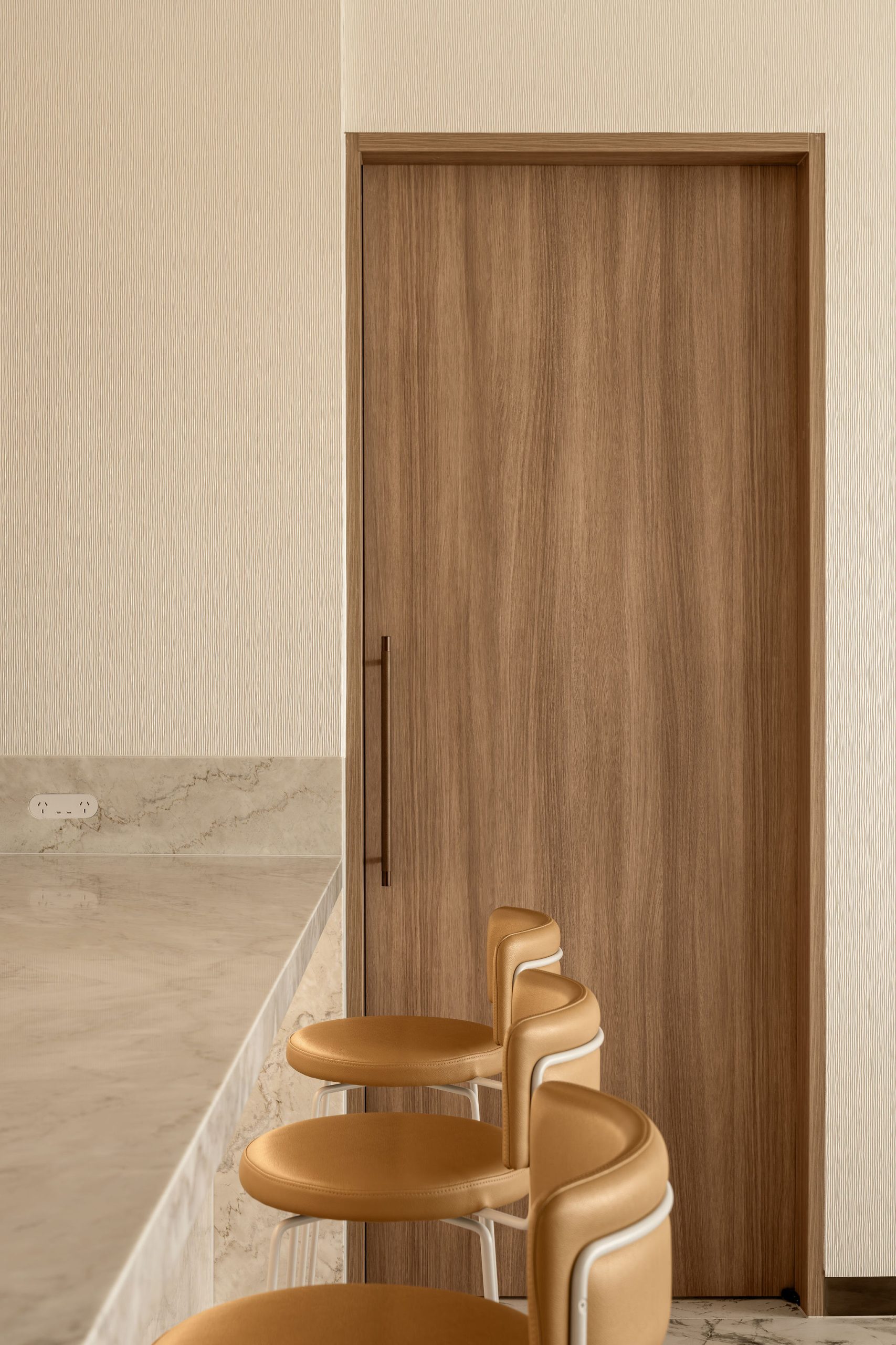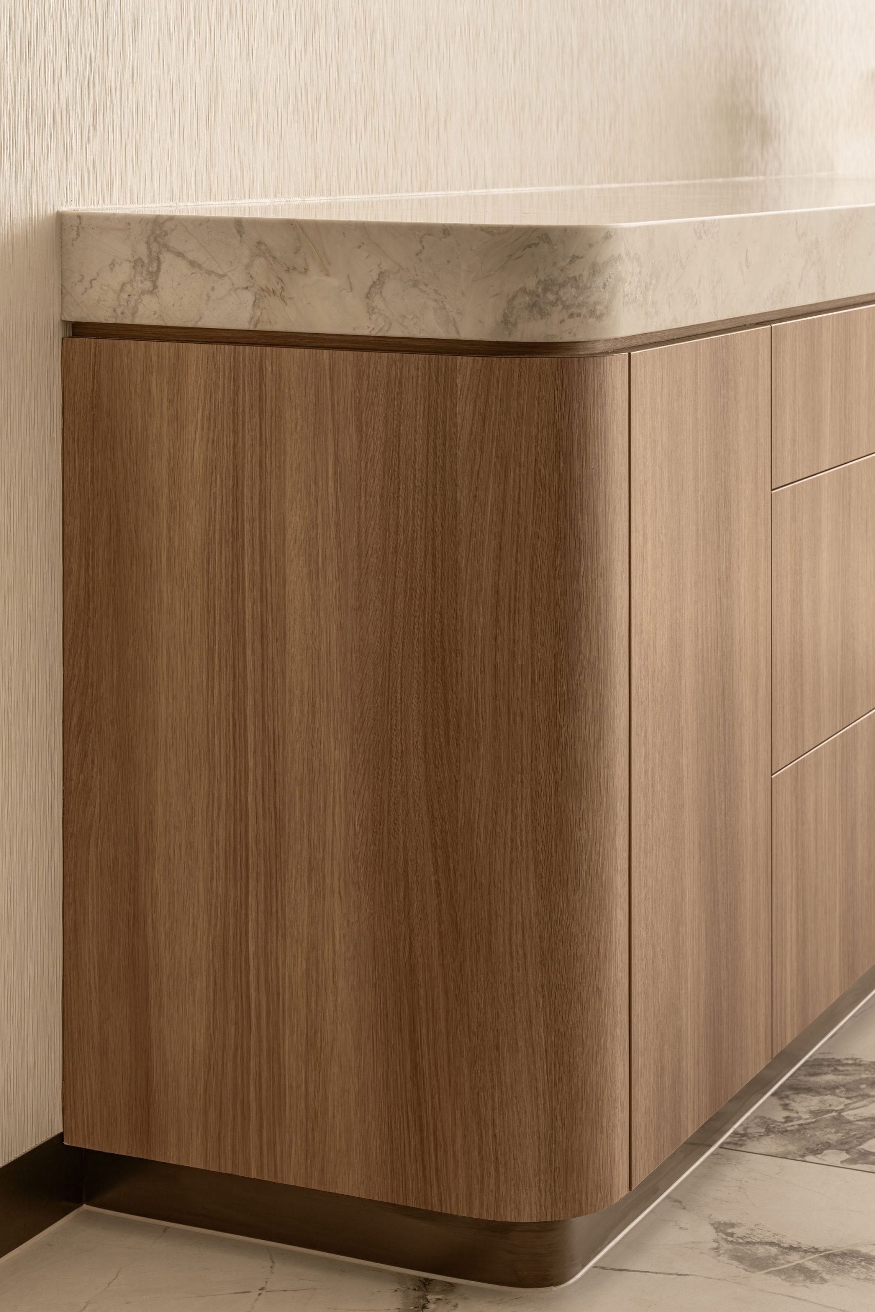 The Toowong kitchen exemplifies refined, design-led contemporary living. Woodmatt cabinetry brings warmth and texture, softening the space while maintaining a sleek, cohesive aesthetic. Stone benchtops provide subtle patterning and durability, forming a generous focal point for family and friends to gather. Soft-close drawers and custom cabinetry offer smooth operation and ample storage, preserving clean lines and an open, uncluttered feel. The result is a timeless, functional kitchen, thoughtfully crafted for both everyday living and entertaining.